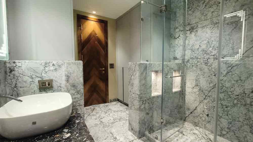 - Italian marble flooring across living and bedrooms